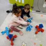 Nous avons emprunté le jeu des tiges à assembler pour faire des constructions géantes, et des petits poneys.