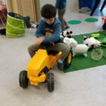 Nous avons beaucoup joué à la ferme, aux bûcherons et à soigner les animaux. Mais aussi aux bateaux pirates, au château, aux fusées, aux avions et aux hélicoptères… Nous avons fait des jeux de société.