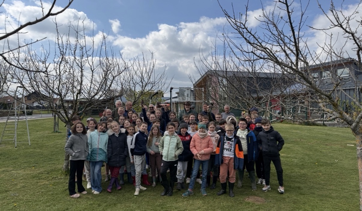 Encadrées par leurs enseignantes, les enfants ont pu découvrir les techniques de la taille, tout en prenant conscience de l’importance de préserver et d’entretenir ces arbres fruitiers. Cette séance a également été l’occasion de rappeler l’histoire de ce projet pédagogique et écologique, qui a marqué plusieurs générations d’élèves.